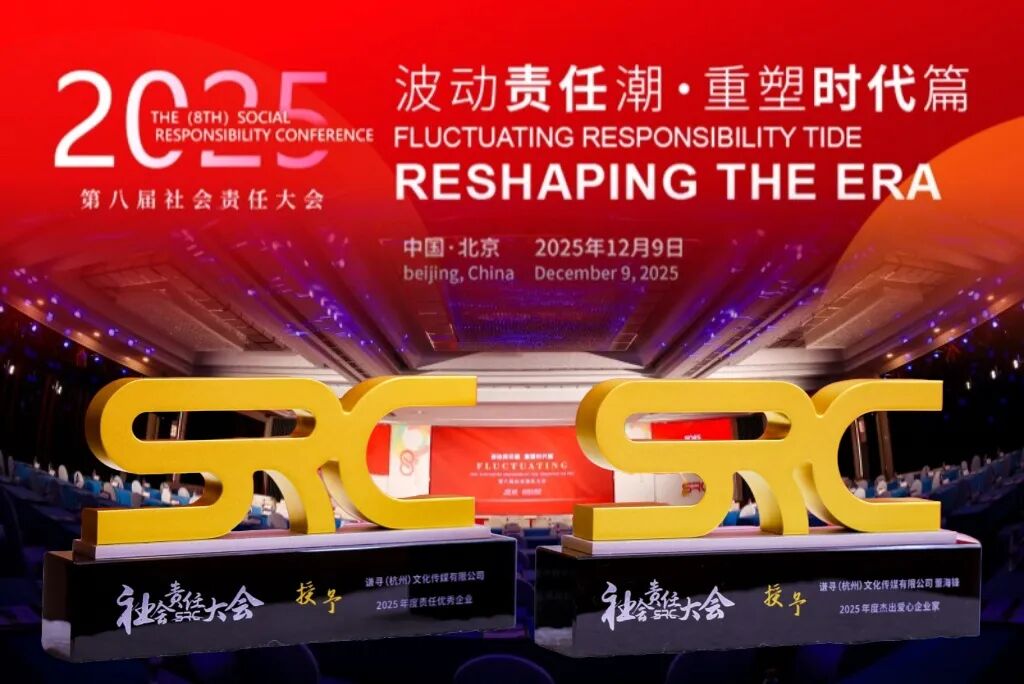 会议隆重发布了“2025SRC.HONOUR”奖的荣誉榜单,其中,谦寻(杭州)文化传媒有限公司荣获“2025年度责任优秀企业”,董事长董海锋荣获“2025年度杰出爱心企业家”。